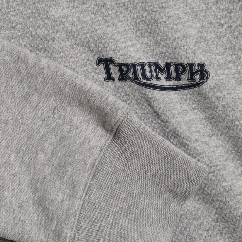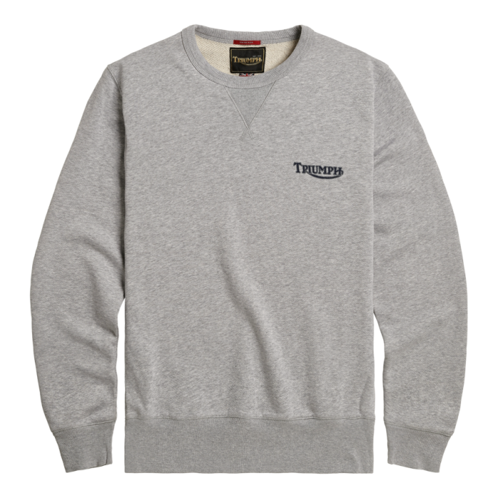 This regular-fit sweat is finished with classic ribbed V-insert at neck, ribbed cuffs and hem, and a subtle Triumph heritage logo print to the left chest.