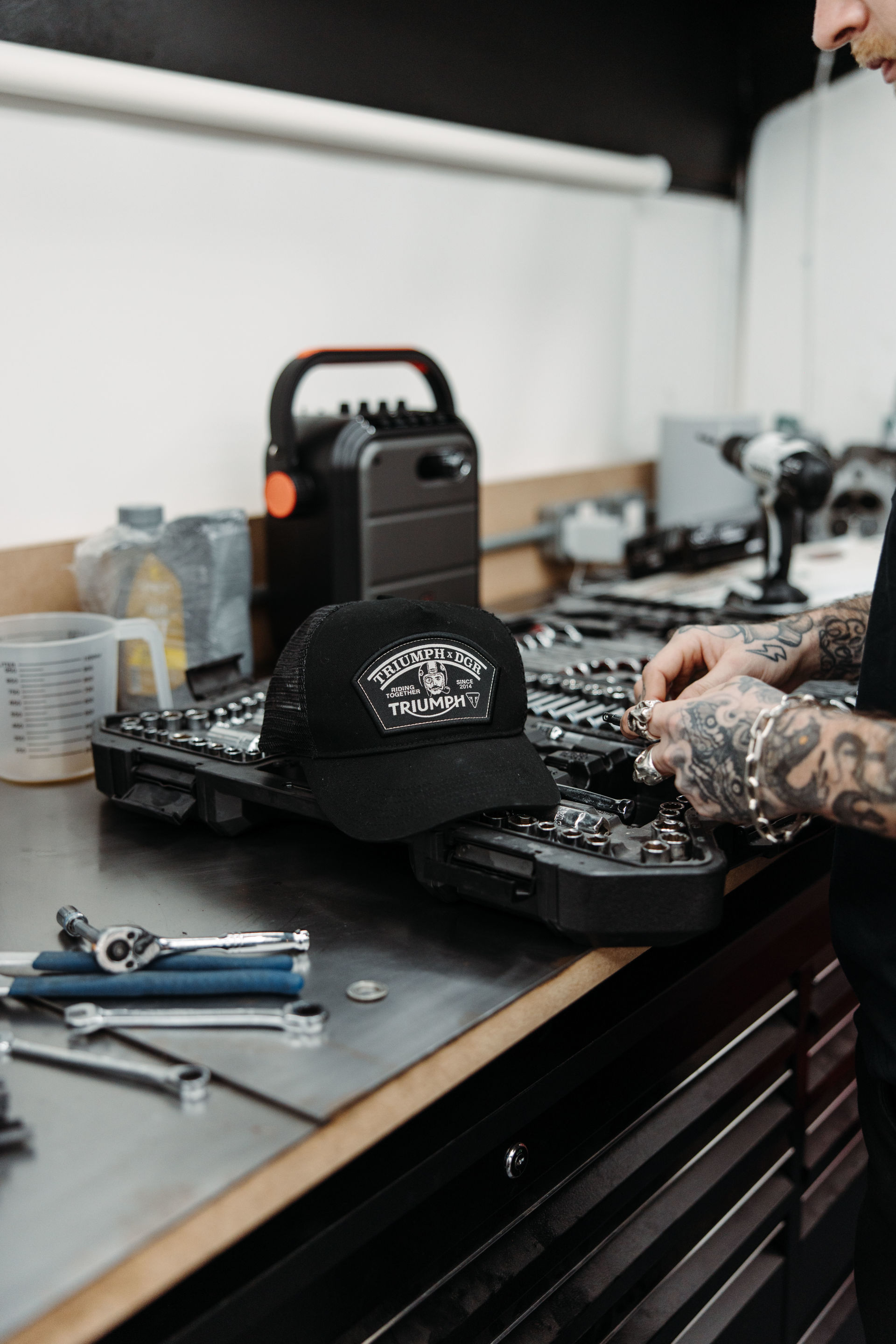 Conquer the chaos of challenging hair days with the Titfer Trucker Cap. One size fits most. Featuring original and exclusive co-branded Triumph and Distinguished Gentleman's Ride 2025 design.