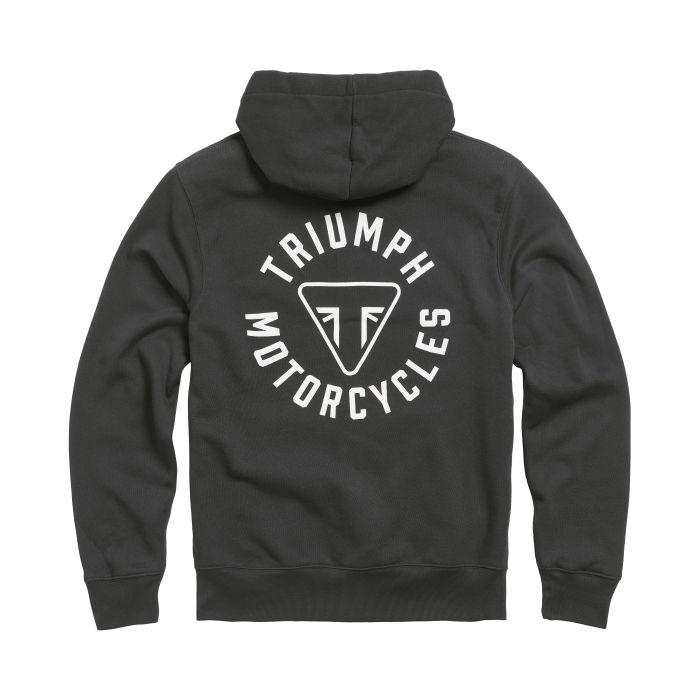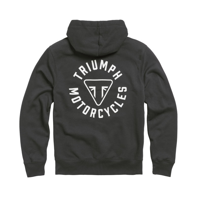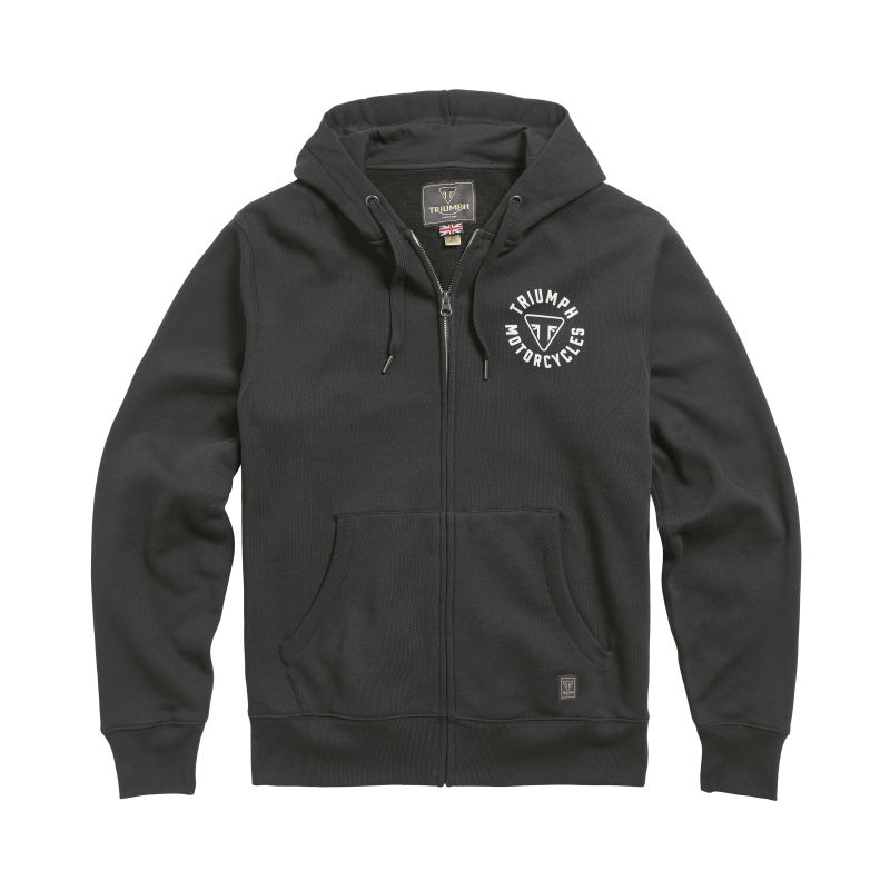 Featuring distinctive Triumph Motorcycles roundel design, full length front zip, double kangaroo pockets and hood drawstring.