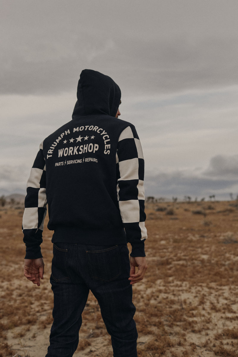Get race day ready with the Haytham Hoodie. Featuring moto-inspired Triumph Workshop arched graphic, bold checkerboard sleeves and constructed in 100% cotton waffle 360gsm.UPS Shipping