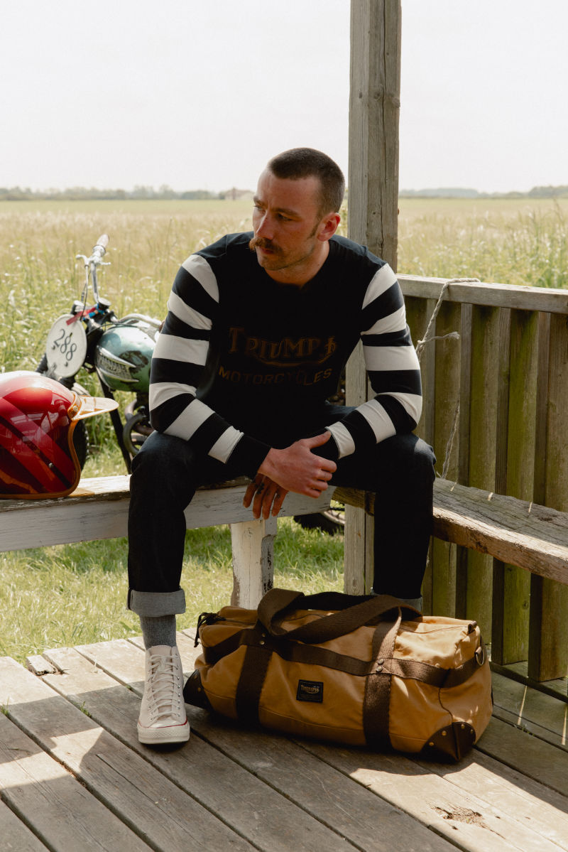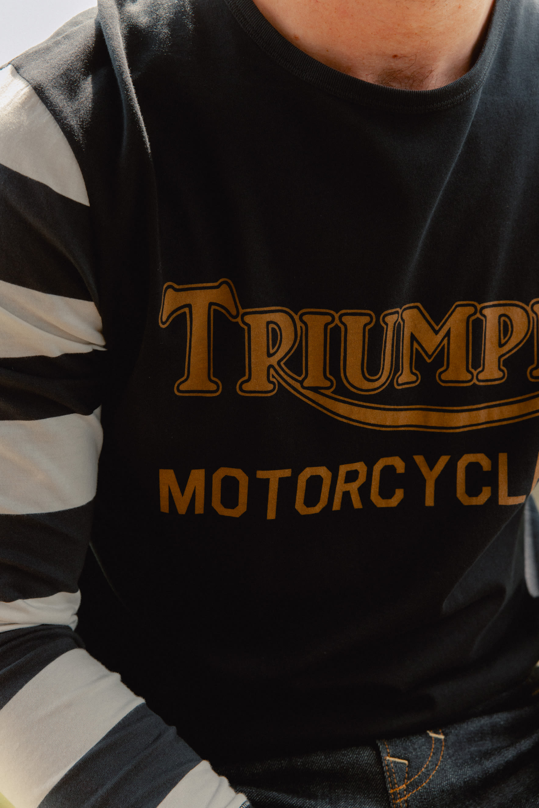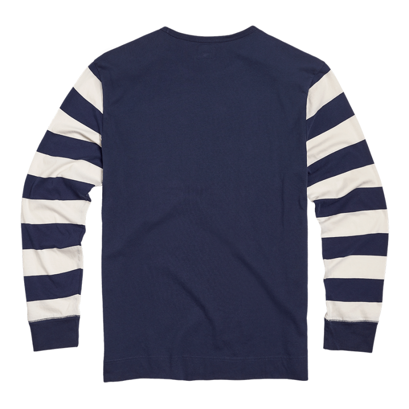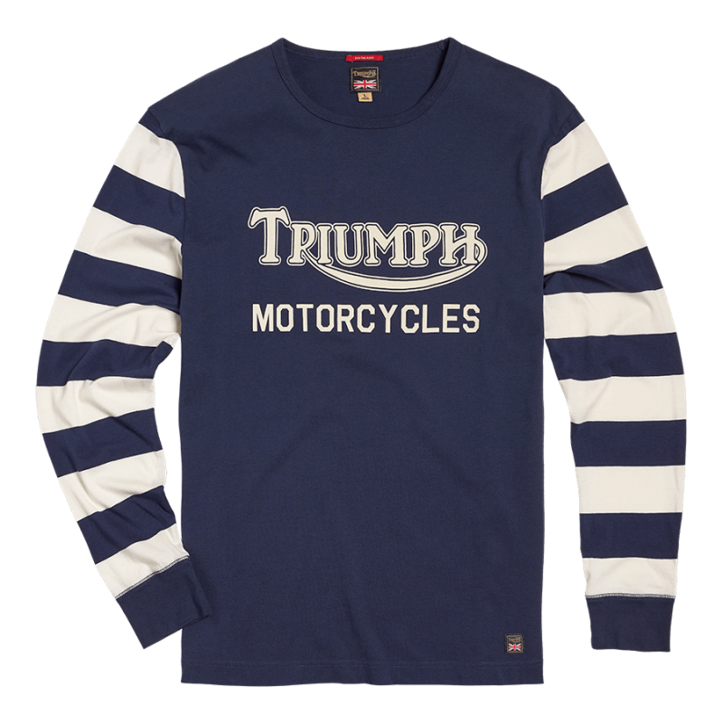 Inspired by the style of vintage flat track racing jerseys, this 100% cotton long-sleeved tee displays a large heritage Triumph Motorcycles logo and lettering, and contrast-color arms.UPS Shipping