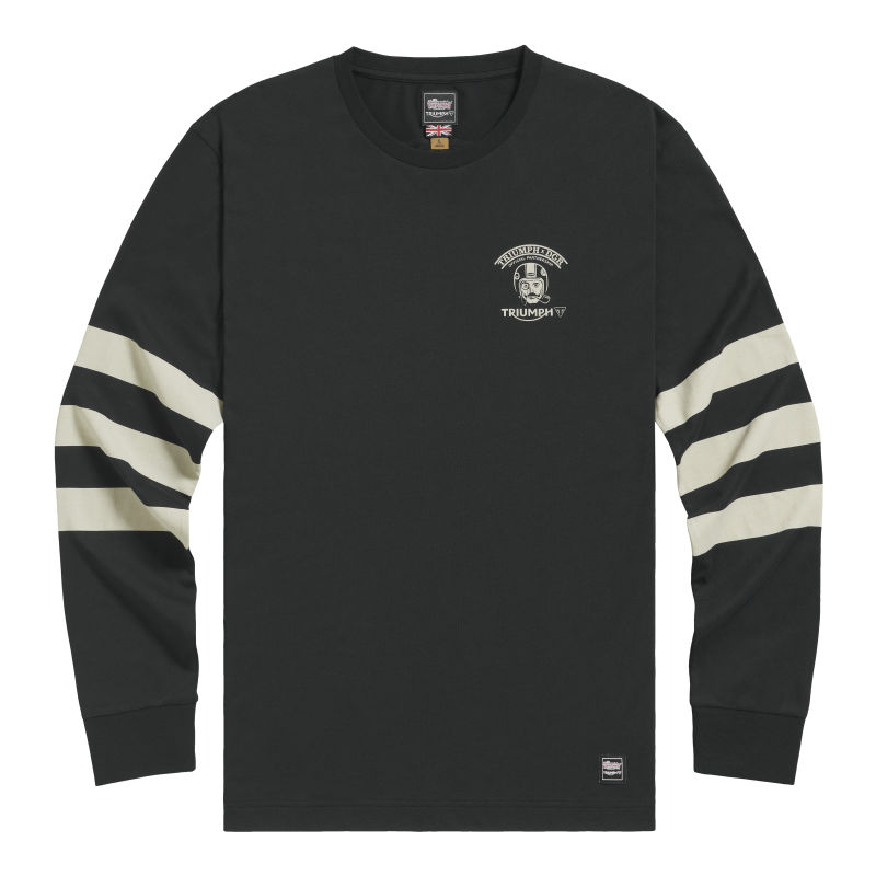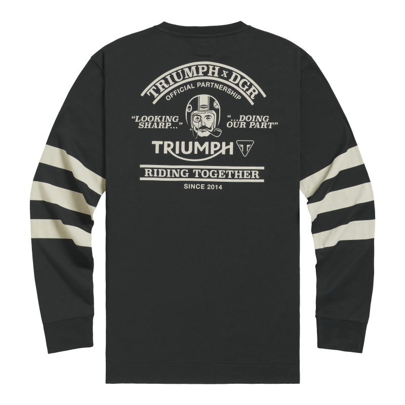 Look sharp and do your part to represent DGR on and off the bike with the Laurence Long Sleeved Graphic Tee. Featuring original and exclusive co-branded Triumph and The Distinguished Gentleman's Ride 2025 design.