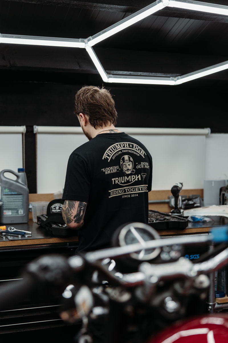 A classic fit tee featuring original and exclusive co-branded Triumph and Distinguished Gentleman's Ride 2025 design.