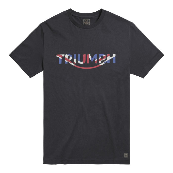 A unique and colorful take on Triumph's instantly recognisable logo, this is a soft cotton 160g weight tee in Jet Black with distinctive prominent Union Jack styling.UPS Shipping