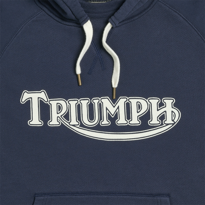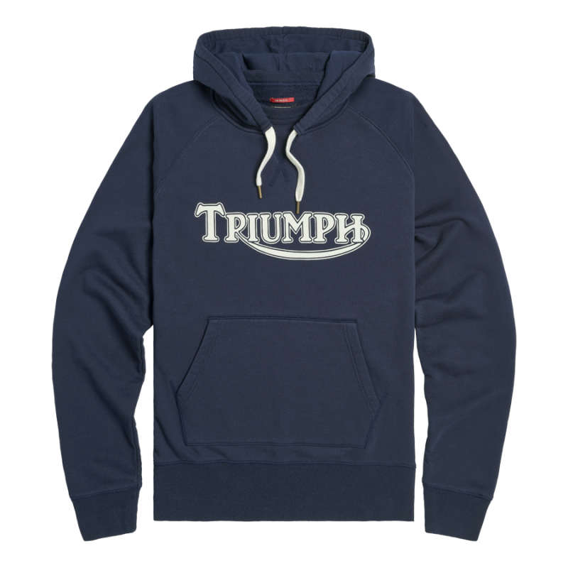 Classic fit heavyweight 400gsm cotton twill hoodie with military overlaid hoodie, kangaroo pocket, v-insert at neck and large Triumph Heritage Logo front and center.