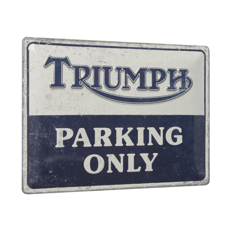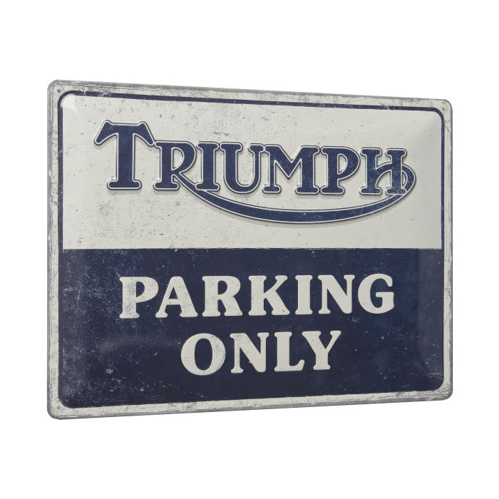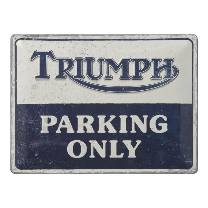 Only Triumph's allowed! Add a pop of character to any space with the Triumph Parking Tin Sign. A perfect addition to any rider's kitchen, office or workshop.UPS Shipping